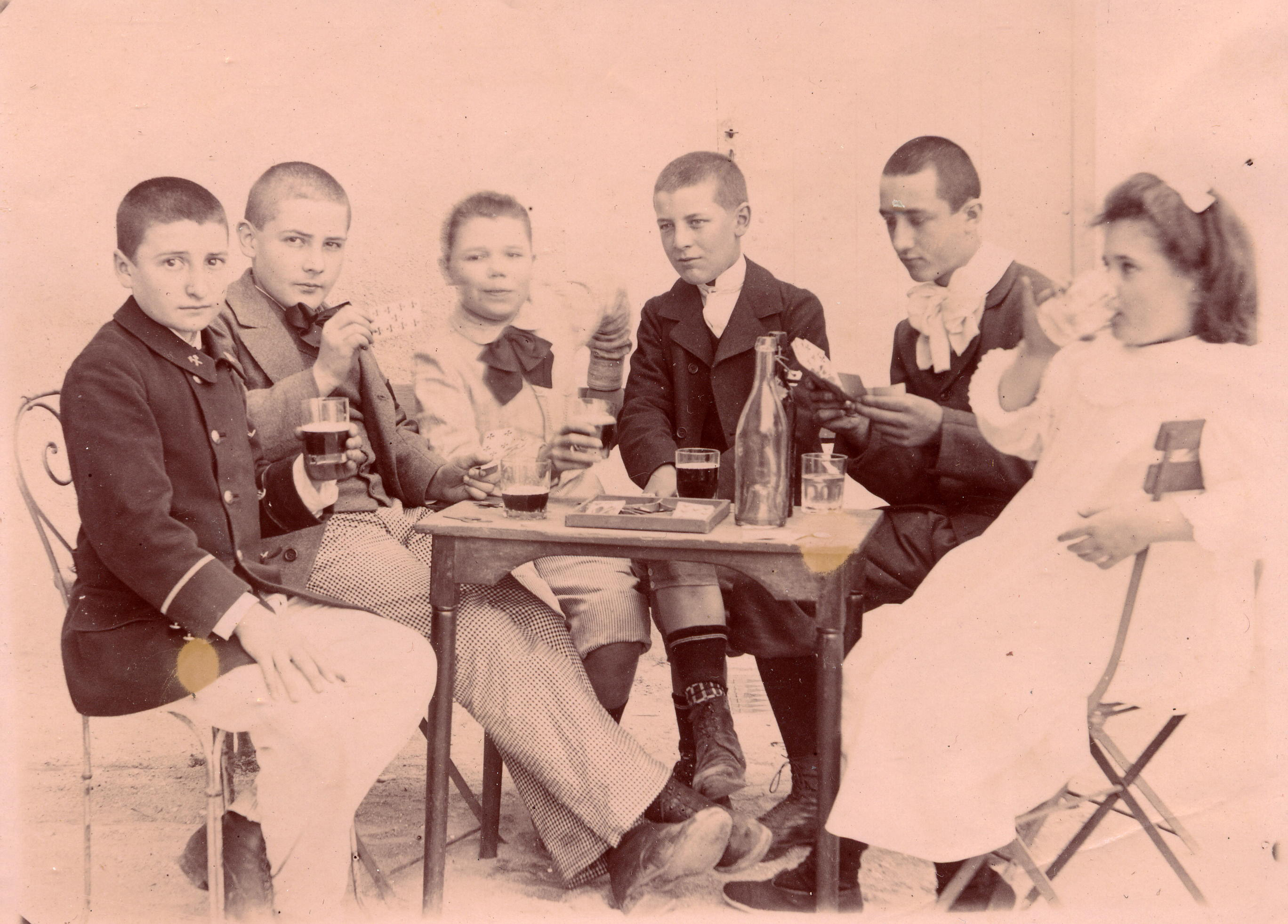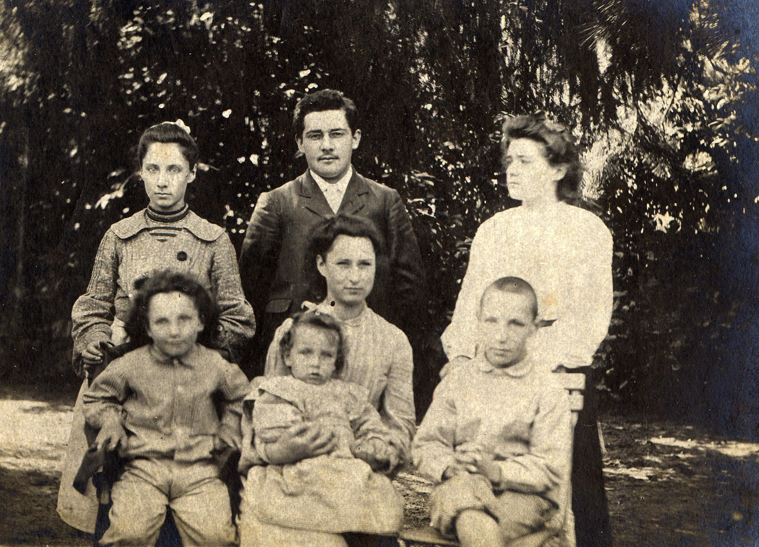 au milieu, sa sœur Alice à droite, son cousin et ses cousines